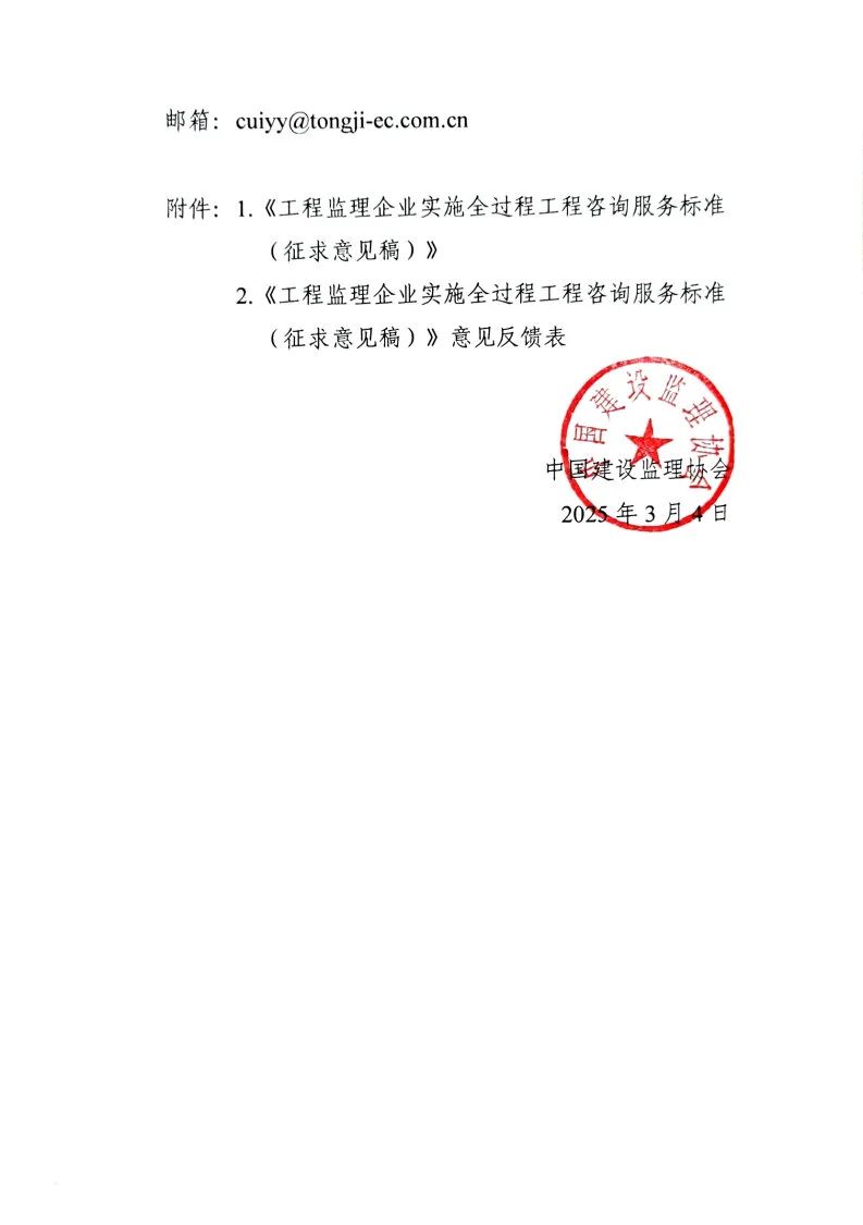 【轉(zhuǎn)】關(guān)于團體標(biāo)準(zhǔn)《工程監(jiān)理企業(yè)實施全過程工程咨詢服務(wù)標(biāo)準(zhǔn)(征求意見稿)》公開征求意見的通知